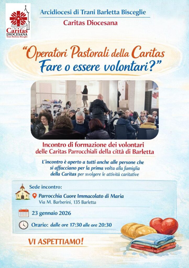 Voci dell’appuntamento don Davide Abascià e Rosa Siciliano (Pax Christi), con l’intervento dell’Arcivescovo S.E. Mons. D’Ascenzo Venerdì 13 febbraio 2026 alle ore 19.00 presso la Parrocchia “SS. Angeli Custodi” arriva “Chiavi di lettura” – II edizione, iniziativa che il Movimento Vivere In ha sviluppato con i suoi cenacoli della Diocesi di Trani, Barletta, Bisceglie. >