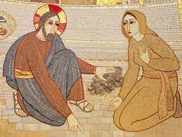 Ma Gesù si chinò e si mise a scrivere col dito per terra. Tuttavia, poiché insistevano nell’interrogarlo, si alzò e disse loro: «Chi di voi è senza peccato, getti per primo la pietra contro di lei». E, chinatosi di nuovo, scriveva per terra. Quelli, udito ciò, se ne andarono uno per uno, cominciando dai più anziani.
