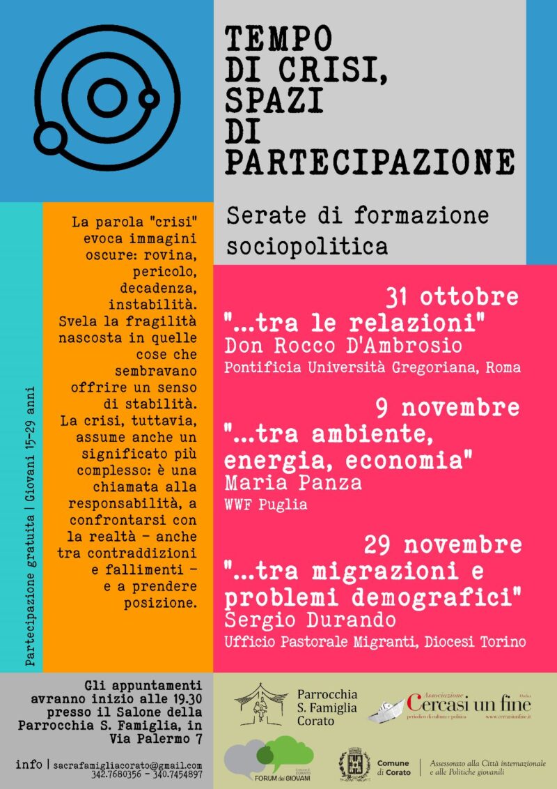 In diocesi, News 27 Ottobre 2022 TEMPO DI CRISI, SPAZI DI PARTECIPAZIONE. Serata di formazione socio politica. PROGRAMMA