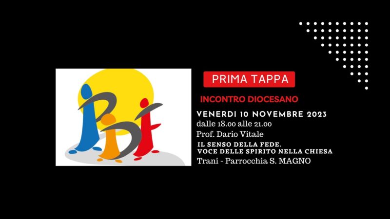 SCHEMA DI PREGHIERA MENTI PER LE DOMANDE ALCUNE INDICAZIONE PER GLI ISCRITTI AL PDF Carissimo e carissima, grazie per esserti iscritto/a al Percorso Diocesano di Formazione PDF. Alcune indicazioni per l’incontro di venerdì 10 novembre 2023. Luogo ed ora Parrocchia San Magno – Trani. L’incontro avrà inizio alle ore 18:00 e terminerà alle ore 21:00. Preghiera Il testo per la preghiera iniziale e … Continua a leggere