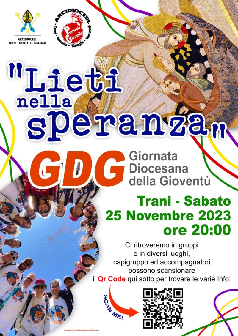 Dal Servizio Diocesano di Pastorale Giovanile PROSSIMI APPUNTAMENTI DELLA PASTORALE GIOVANILE DIOCESANA: GDG & RITIRO D’AVVENTO LA PROSSIMA GDG Come ogni anno vogliamo celebrare assieme alla Chiesa Universale la giornata diocesana dei giovani. La sera della vigilia di CRISTO RE, il 25 novembre alle 20.00, ci ritroveremo a Trani assieme al nostro Arcivescovo per annunciare e testimoniare la nostra SPERANZA. LA GDG È COME SEMPRE … Continua a leggere