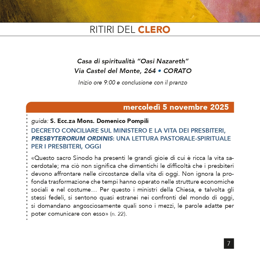 CORATO 5 NOVEMBRE 2025 – RITIRO DEL CLERO DIOCESANO