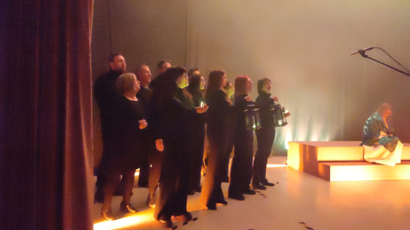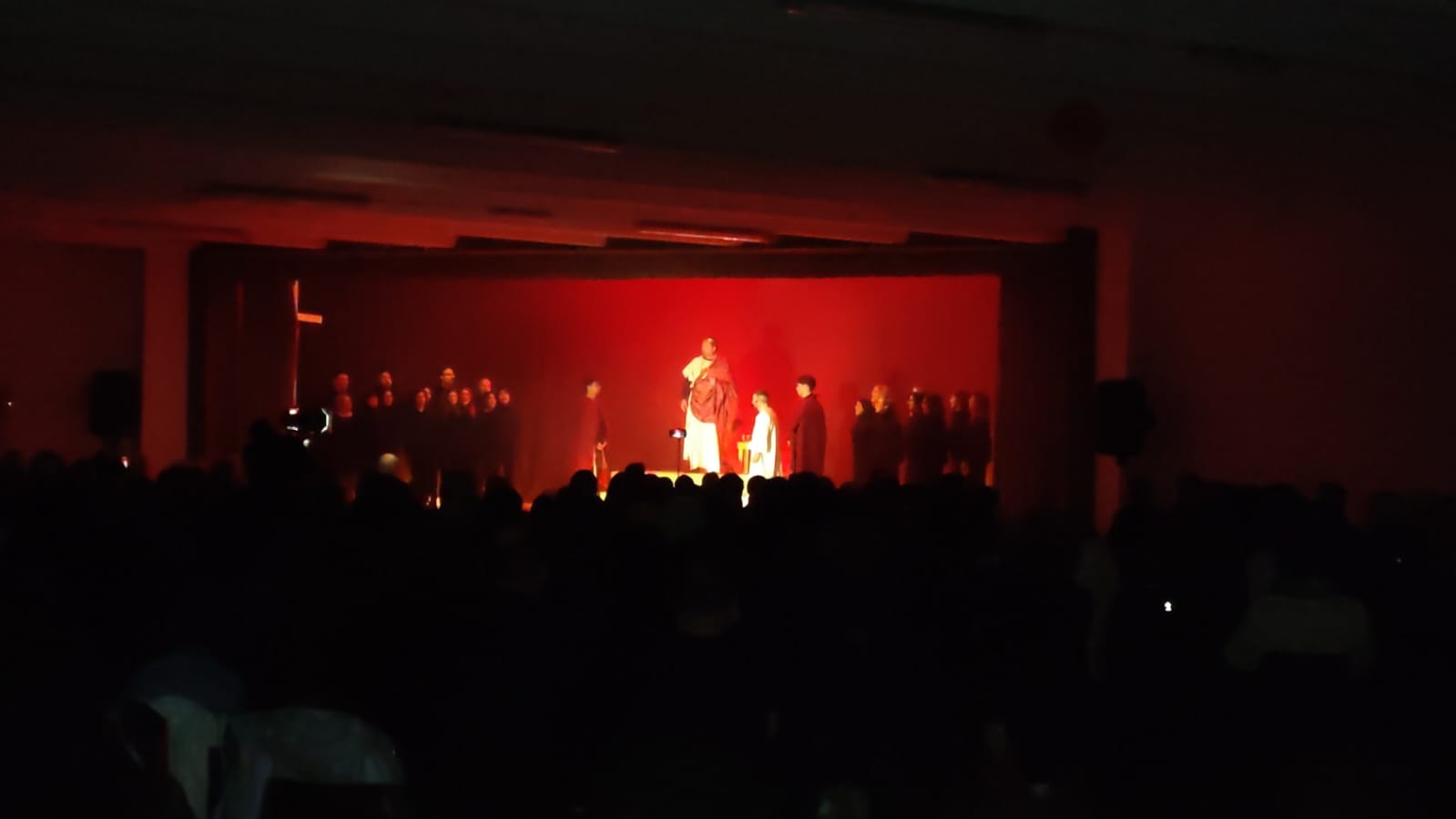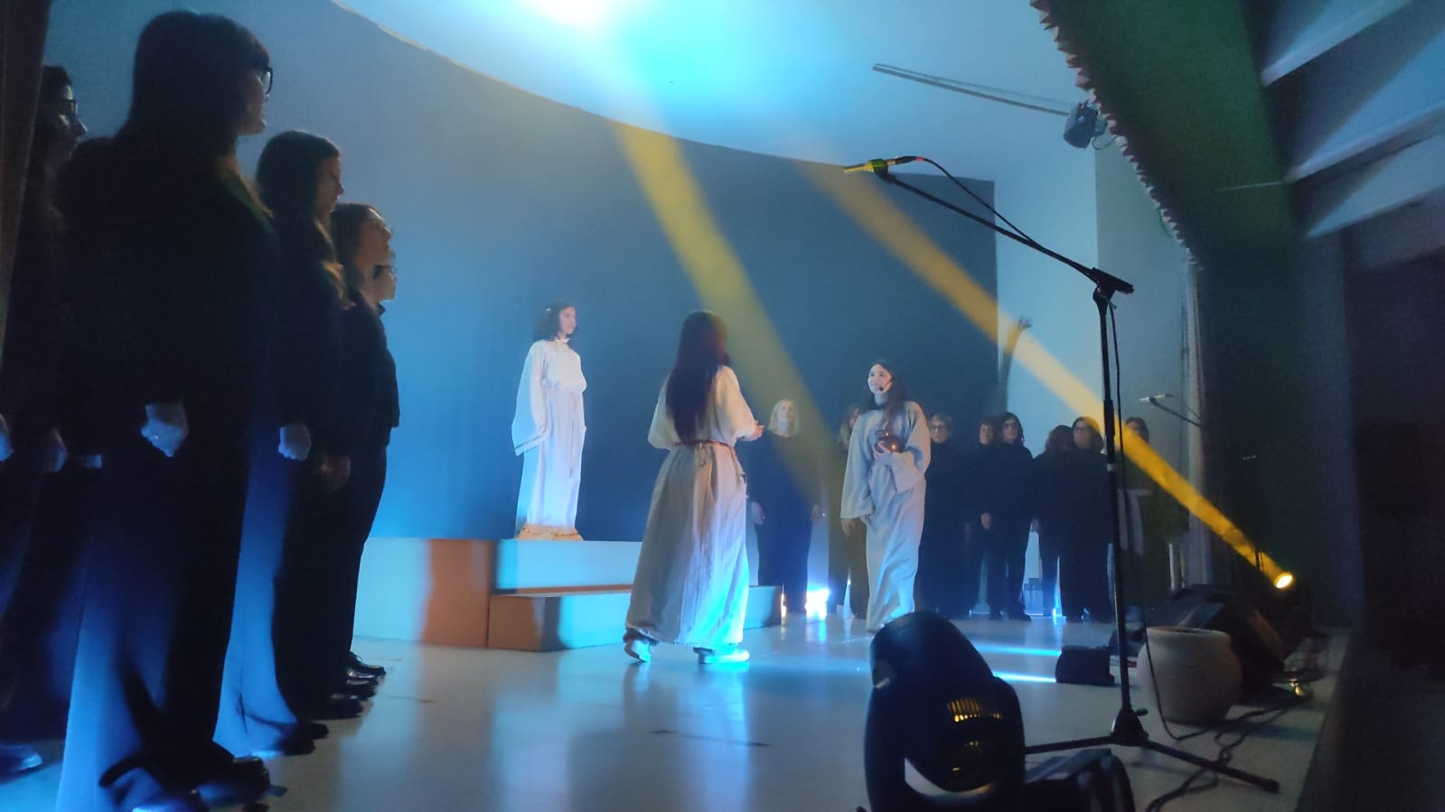 L’evento ha proposto un percorso artistico e spirituale centrato sul tema dell’indifferenza, attraverso un linguaggio essenziale fatto di musica, luci e immagini evocative. La scena, dominata dal contrasto tra buio e luce e da pochi elementi simbolici, ha accompagnato una performance corale intensa, capace di coinvolgere il pubblico in modo profondo e partecipato.