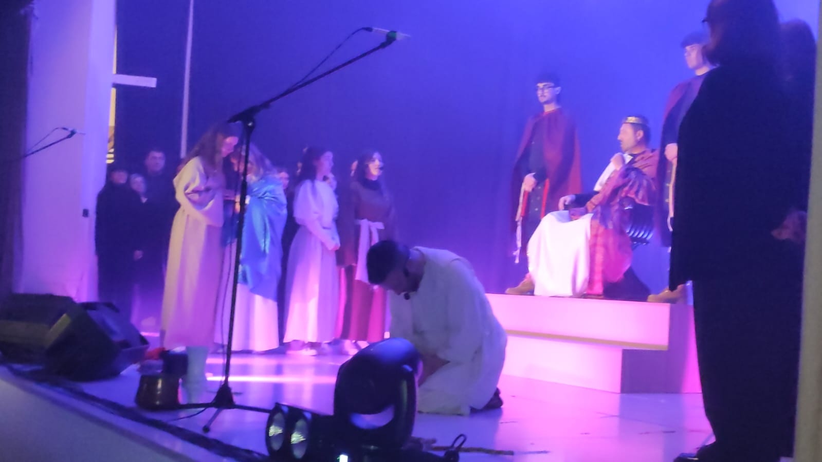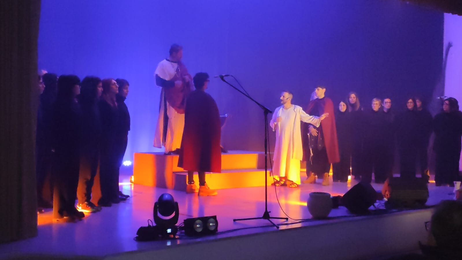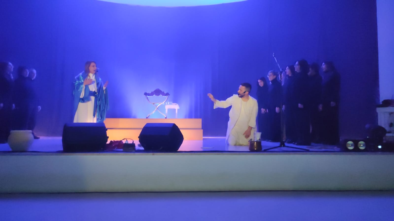 L’evento ha proposto un percorso artistico e spirituale centrato sul tema dell’indifferenza, attraverso un linguaggio essenziale fatto di musica, luci e immagini evocative. La scena, dominata dal contrasto tra buio e luce e da pochi elementi simbolici, ha accompagnato una performance corale intensa, capace di coinvolgere il pubblico in modo profondo e partecipato.