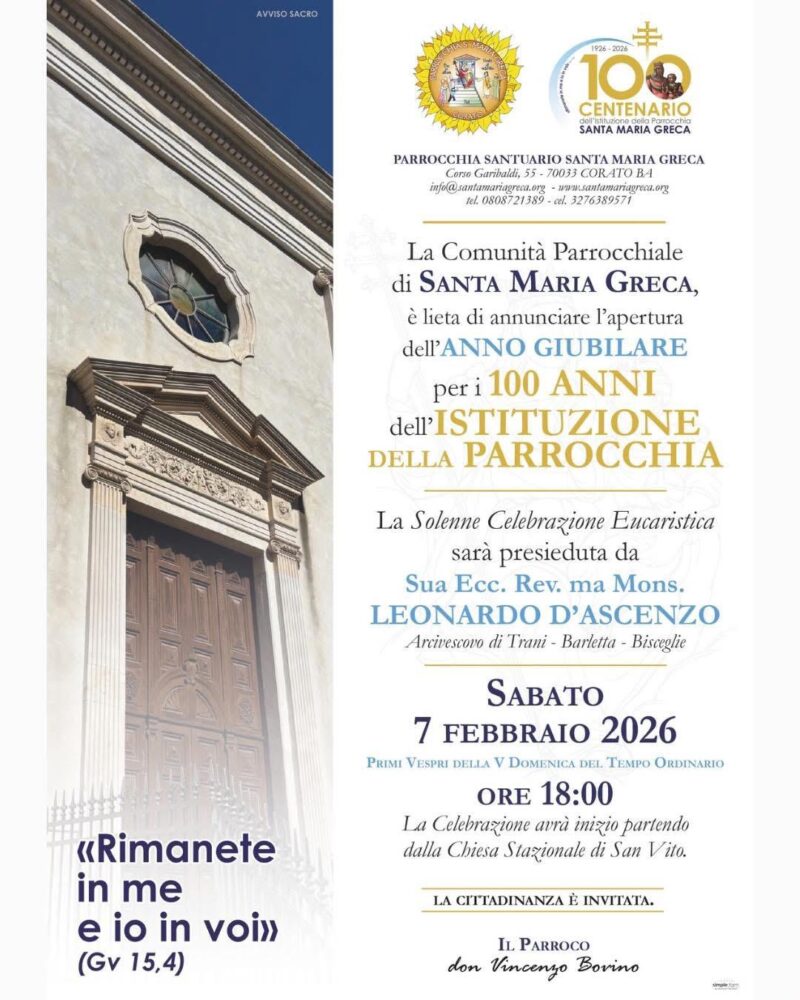 Secondo appuntamento del Laboratorio Diocesano della Formazione del Settore Adulti di Azione Cattolica Il Settore Adulti dell’Azione Cattolica diocesana organizza il secondo appuntamento del Laboratorio Diocesano della Formazione, che si terrà lunedì 23 febbraio alle ore 19:30 presso la Casa di Spiritualità Oasi di Nazareth, a Corato. È possibile partecipare all’iniziativa compilando il modulo al seguente link: https://forms.gle/96SFg412DGM7YmFz9 L’incontro si aprirà con … Continua a leggere
