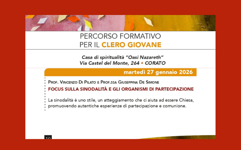 PER RIVEDERE IL PROGRAMMA “IN CAMMINO” DEDICATO AL “SERVIZIO DIOCESANO PER LA FORMAZIONE PERMANENETE E LA CULTURA”, ANDATO IN ONDA NELLA SERATA DEL 5 FEBBRAIO 2026 DAPPRIMA SU RADIO IN BLU E POI SU TV 2000, CONDOTTO DA ENRICO SELLERI In collegamento da Trani l’Arcivescovo mons. Leonardo D’Ascenzo e in studio a Roma don Vincenzo Di Pilato, Vicario Episcopale per il Servizio diocesano per … Continua a leggere