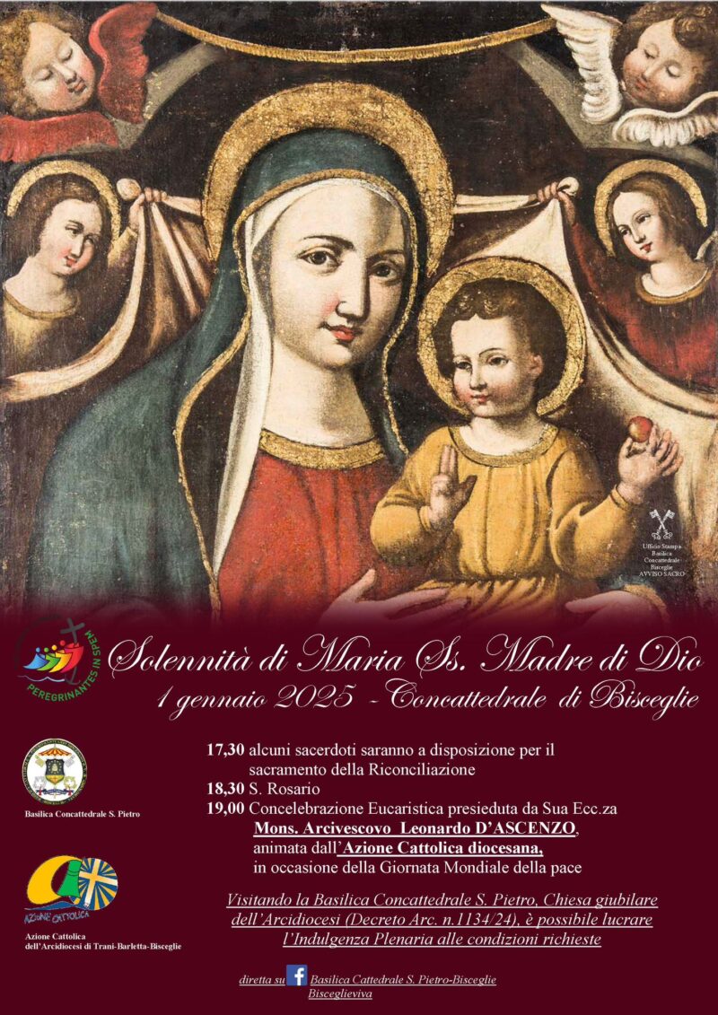 La Basilicata Concattedrale S. Pietro di Bisceglie si prepara ad ospitare la S. Messa presieduta dall’Arcivescovo, mons. Leonardo D’Ascenzo, in occasione della Solennità di Maria Ss. Madre di Dio, il prossimo 1 gennaio 2025. La celebrazione, promossa dall’Azione Cattolica dell’Arcidiocesi di Trani-Barletta-Bisceglie-Nazareth all’inizio dell’anno giubilare nella Giornata mondiale della pace sarà trasmessa in diretta sulle pagine Facebook della Basilica Concattedrale di Bisceglie (https://www.facebook.com/cattedralebisceglie) e … Continua a leggere