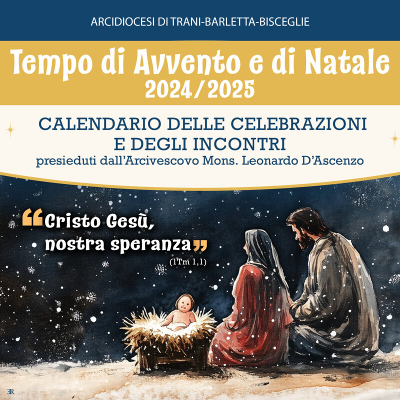 Lunedì 23 dicembre 2024, a Trani, nella Curia Arcivescovile, alle ore 17.00, Mons. Leonardo D’Ascenzo, Arcivescovo di Trani-Barletta-Bisceglie, incontrerà i giornalisti e gli operatori delle comunicazioni sociali per porgere una sua riflessione sul Natale e per lo scambio degli auguri. Pertanto si invitano le diverse testate giornalistiche a prendere parte all’incontro ai fini della diffusione del messaggio che Mons. D’Ascenzo vorrà offrire. … Continua a leggere