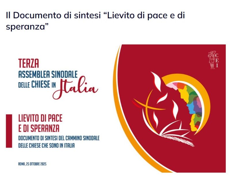 La terza Assemblea sinodale, tenutasi a Roma il 25 ottobre, ha approvato con 781 “placet” su 809 votanti il Documento di sintesi del Cammino sinodale delle Chiese che sono in Italia, dal titolo “Lievito di pace e di speranza”.