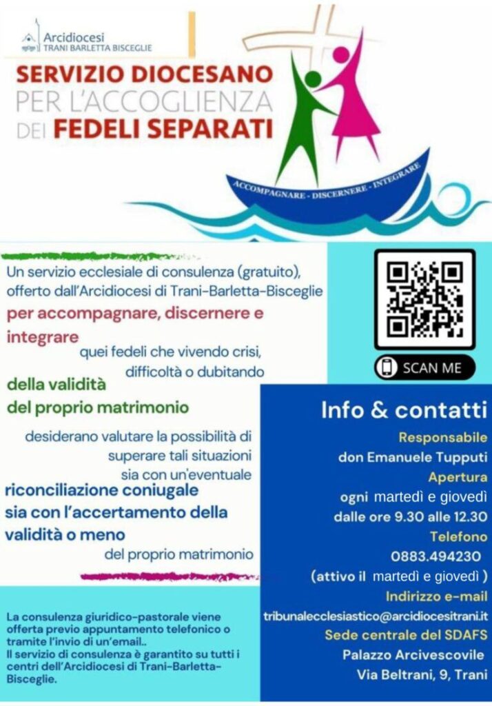 Per una maggiore divulgazione del servizio diocesano e dell’attenzione particolare della nostra diocesi a quanti vivono situazioni di fragilità si esortano i sacerdoti di affiggere la locandina nelle bacheche parrocchiali.