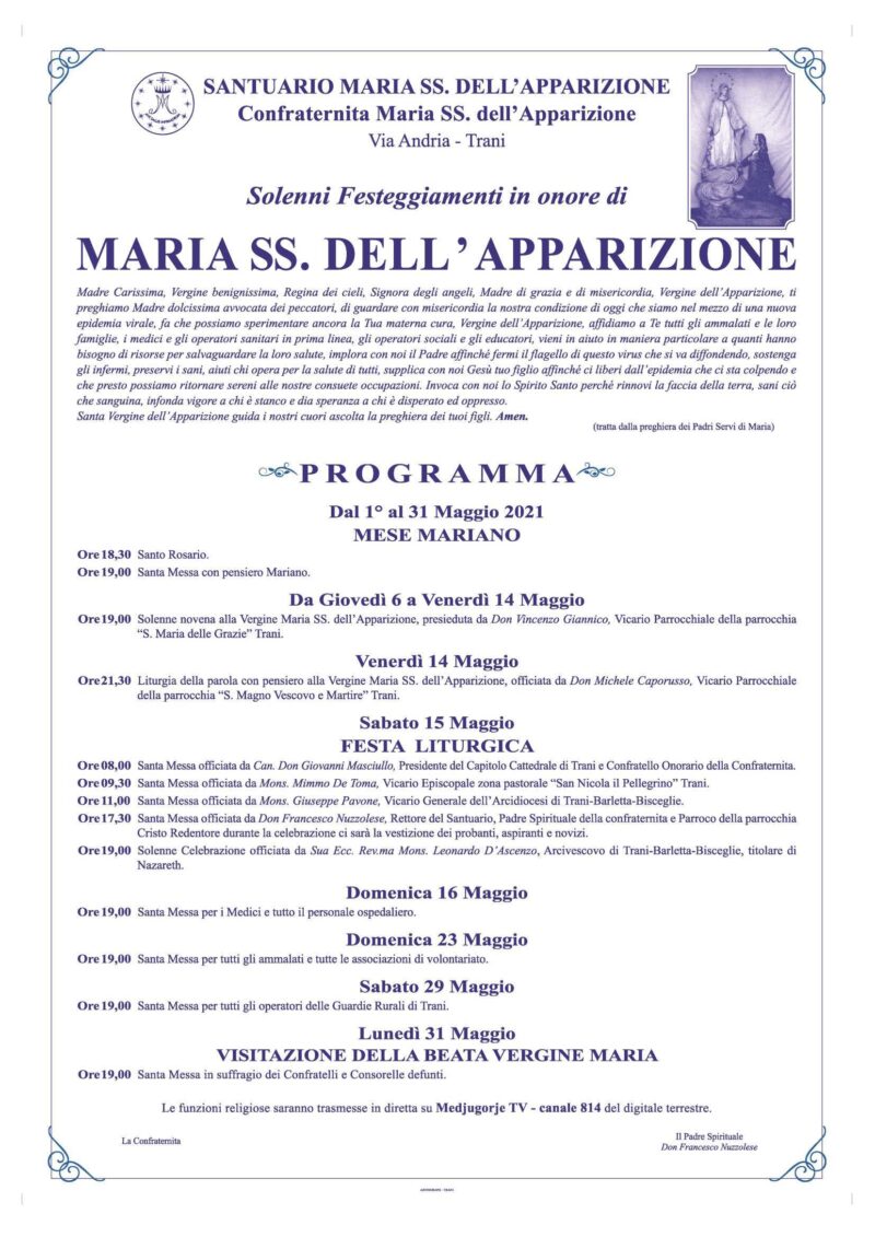 SOLENNI FESTEGGIAMENTI IN ONORE DI MARIA SS. DELL’APPARIZIONE