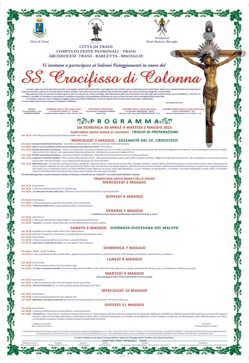 DAL 30 APRILE AL 02 MAGGIO 2023 (TRIDUO DI PREPARAZIONE) SANTUARIO SANTA MARIA DI COLONNA Ore 18:30 Santa Messa presieduta da padre Donato SARDELLA, frate minore. MERCOLEDÌ 3 MAGGIO 2023 – FESTA LITURGICA Ore 6,30 Santuario Santa Maria di Colonna – Santa Messa celebrata dal Can. Domenico Gramegna, Rettore del Santuario. Ore 8,00 Molo San Nicola – Apertura dei festeggiamenti con Diana della … Continua a leggere