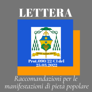 «facendo seguito al decreto del 16 marzo 2022 (prot. n. 686/22) con il quale disponevo la ripresa delle feste religiose e della pia pratica delle processioni in questa Arcidiocesi a partire dal 1 aprile p.v., tenuto conto dell’andamento del contagio pandemico in continua evoluzione, in dialogo costante con le autorità di governo locale, comunico alcune raccomandazioni per le manifestazioni di pietà popolare legate ai prossimi riti pasquali e alle altre manifestazioni similari.