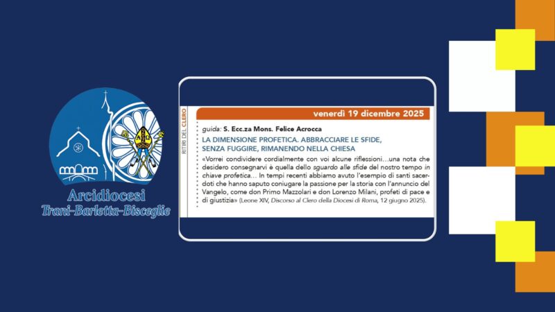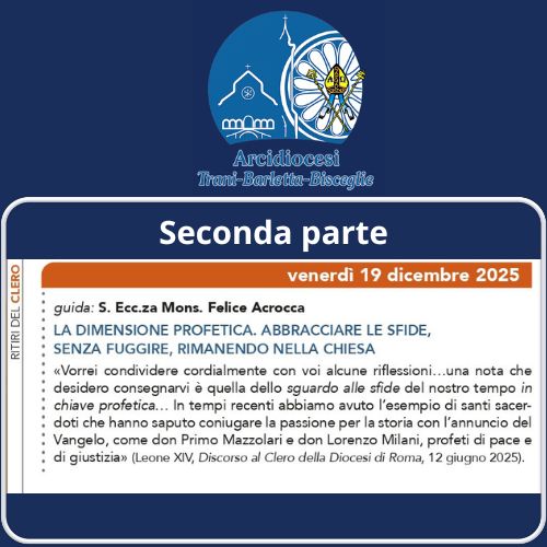 FORMAZIONE CLERO, News, RITIRI DEL CLERO 22 Dicembre 2025 LA DIMENSIONE PROFETICA. ABBRACCIARE LE SFIDE, SENZA FUGGIRE, RIMANENDO NELLA CHIESA – Guida: S. Ecc.za Mons. Felice Acrocca Ritiro del Clero Venerdì 19 dicembre 2025