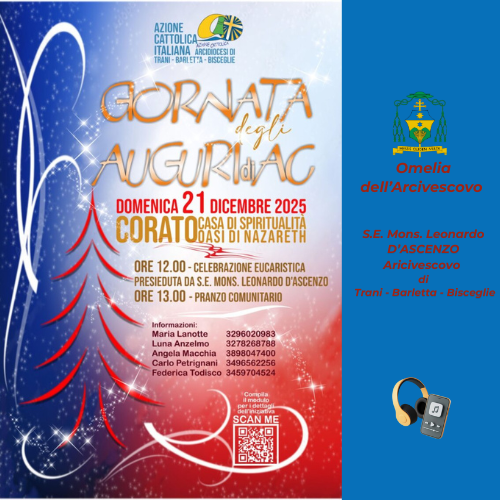 Il 21 dicembre a Corato si terrà la Giornata degli Auguri di Ac, presso la Casa di Spiritualità Oasi di Nazareth.