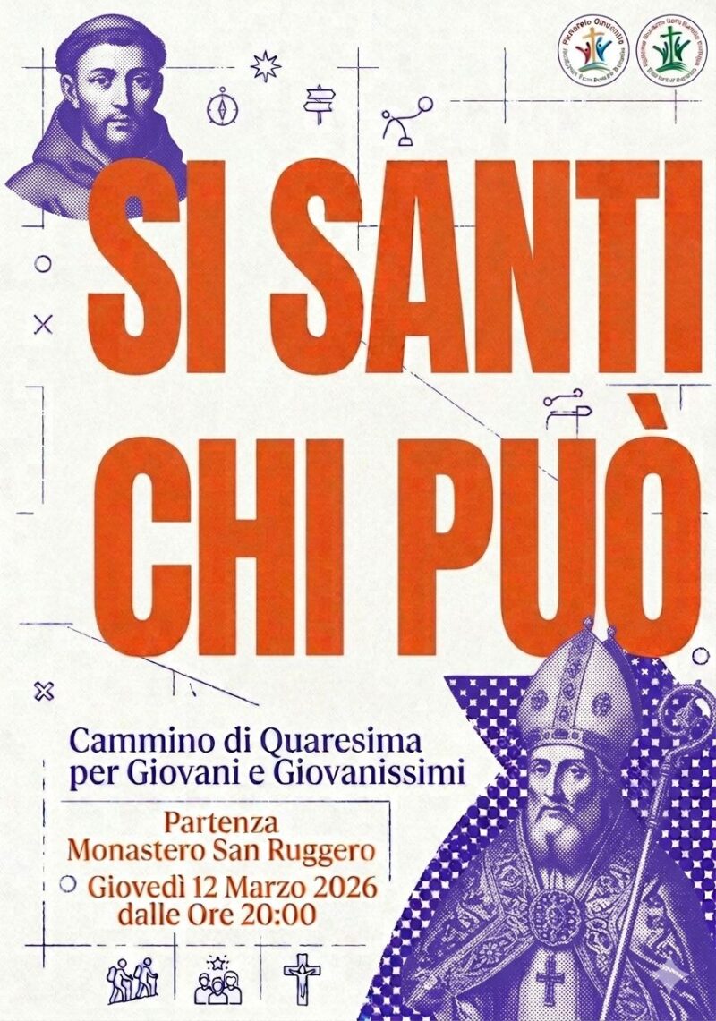 Giovedì 12 marzo, a partire dalle ore 20:00, si terrà il cammino di preghiera e riflessione per giovani e giovanissimi della Zona Pastorale di Barletta “Si Santi chi può”.La “via della croce” di Gesù incontra le vite di S. Ruggiero e S. Francesco d’Assisi, e anche le vite di giovani in cammino sulla strada del Vangelo.Il percorso avrà inizio presso il Monastero di S. Ruggero … Continua a leggere