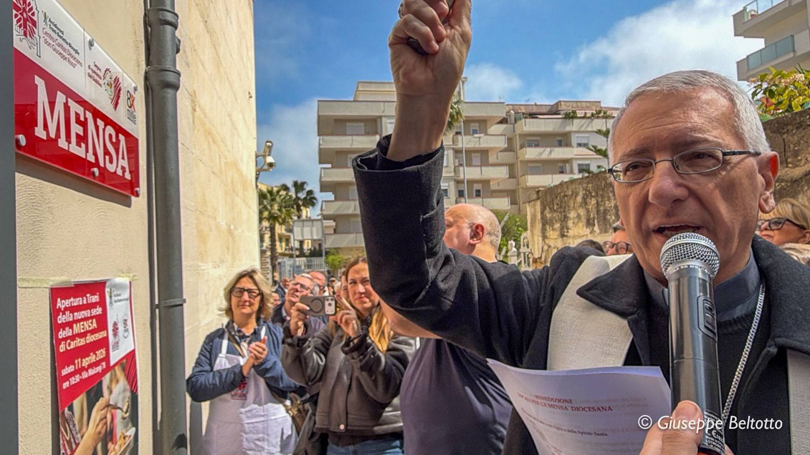 «Saluto con gioia la nuova mensa Caritas a Trani! Si, nuova, non l’apertura di un servizio che prima non vi era, in quanto da anni e con il generoso apporto di volontari e volontarie delle parrocchie della città, essa era operativa stabilmente presso la parrocchia S. Giuseppe.