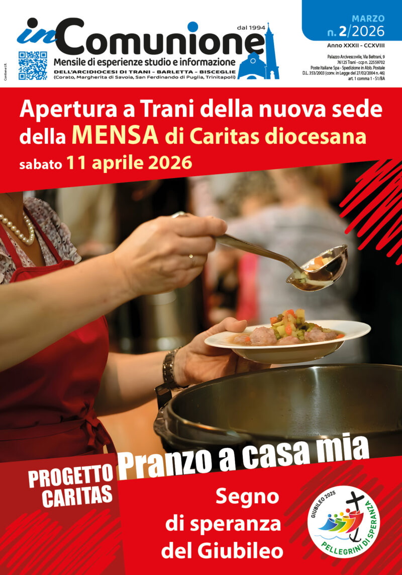 In Comunione, News 26 Marzo 2026 In Comunione torna con un nuovo numero Da Trani un segno concreto: la mensa Caritas diventa casa per chi ha piΓΉ bisogno. incomunione2026-02