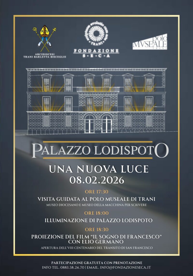 «Grazie alla volontà dell’Arcidiocesi, celebriamo oggi la rinascita di un simbolo e un invito a riscoprire l’identità più profonda di Trani» hanno sottolineato dall’ Ufficio Amministrativo Diocesano ; «Restituire a Palazzo Lodispoto la sua integrità, significa consolidare la nostra missione di custodi del Bello» dichiarano dalla Fondazione S.E.C.A.