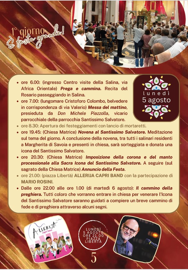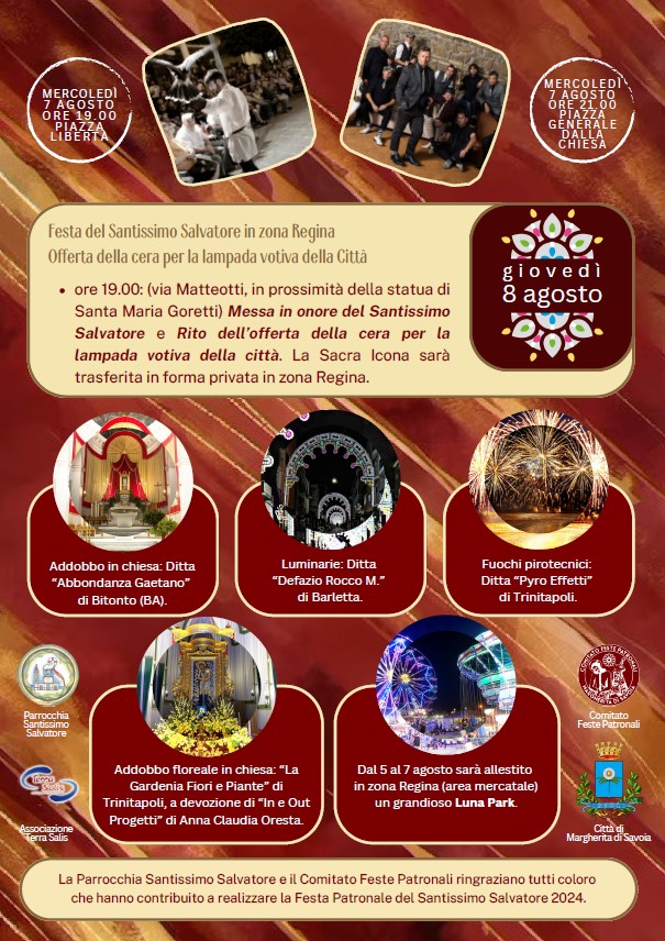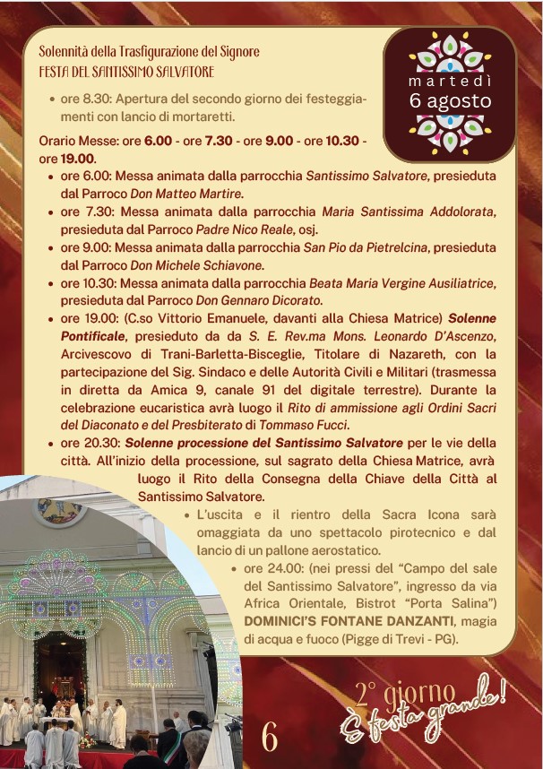 MARGHERITA DI SAVOIA. SOLENNI FESTEGGIAMENTI IN ONORE DEL SS. SALVATORE