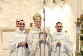 Omelia Arcivescovo ordinazione presbiterale M.P.Castagnaro e F.P. Pellizzieri L’ordinazione presbiterale di Michele e Paolo è per tutti noi motivo di gioia e di gratitudine. Nella preghiera chiediamo al Signore di accompagnarli e di aiutarli a rispondere in pienezza al dono che riceveranno. La festa della Dedicazione della Basilica Lateranense, … Leggi tutto «SIATE GRATI E, DI CONSEGUENZA, GRATUITI!» Omelia dell’Arcivescovo nella solenne concelebrazione in occasione dell’ordinazione presbiterale dei diaconi Michele Pio Castagnaro e Francesco Paolo Pellizzieri. Trani, Cattedrale, 8 novembre 2025