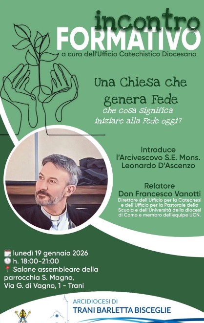 L’appuntamento è fissato per lunedì 19 gennaio 2026, dalle ore 18.00 alle 21.00, presso il Salone assembleare della parrocchia San Magno, in via G. di Vagno 1 a Trani.