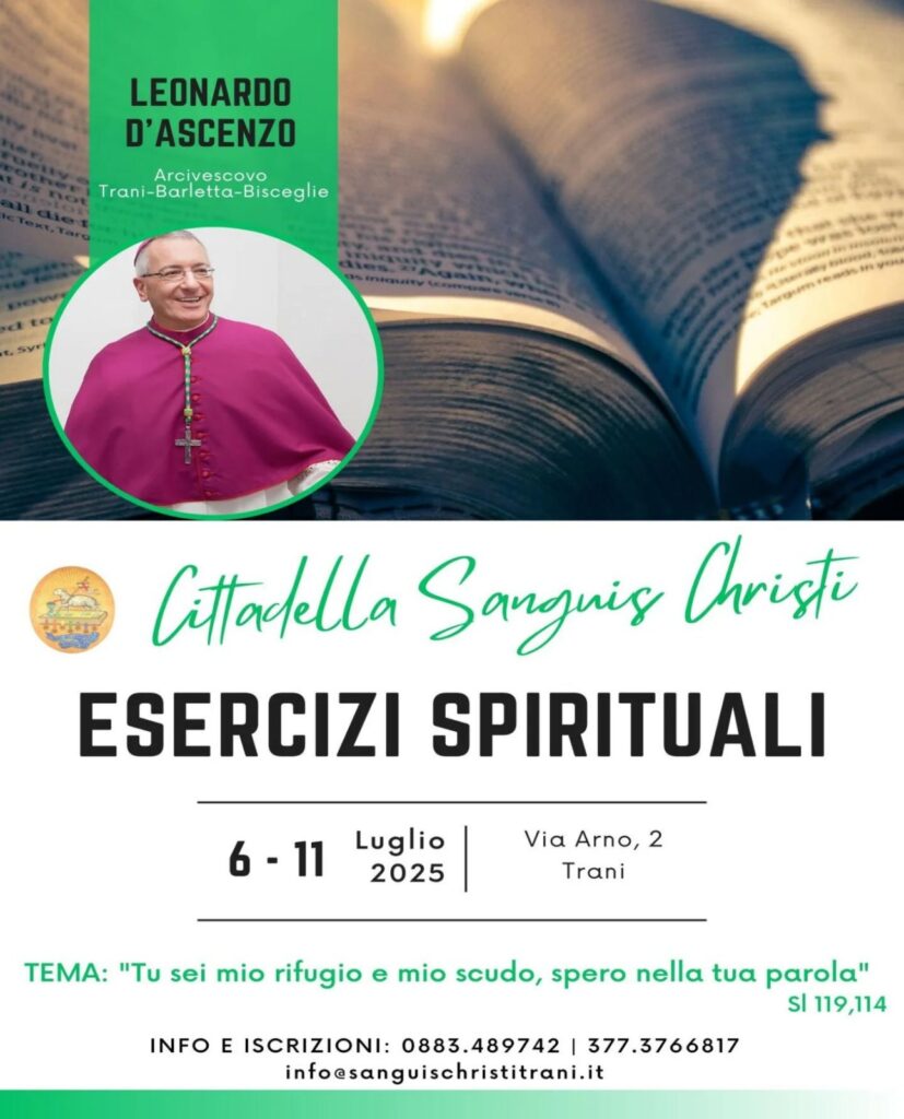 In Evidenza ADORAZIONE EUCARISTICA VOCAZIONALE GIORNATA PRO ORANTIBUS – MONASTERO SAN RUGGIERO ADORAZIONE EUCARISTICHE VOCAZIONALI Zona pastorale di Margherita di Savoia, San Ferdinando e Trinitapoli dall'Ufficio 2 Giugno 2025 APERTE LE ISCRIZIONI AL CORSO DI ESERCIZI SPIRITUALI GUIDATI DALL’ARCIVESCOVO 22 Maggio 2025 ELEZIONE DELLA CONSACRATA DELEGATA USMI 10 Marzo 2025 TRANI – Conferenza “Trasmettere la vita per rianimare la speranza” in occasione del secondo compleanno del Centro di Aiuto alla Vita “Serafine Cinque” 1 Febbraio 2025 OMELIA DELL’ARCIVESCOVO NELLA CELEBRAZIONE IN OCCASIONE DELLA GIORNATA DIOCESANA DELLA VITA CONSACRATA 30 Gennaio 2025 I PASSI DELLA SPERANZA CON IL VENTO DELLO SPIRITO Archivio "in Diocesi" Delegata Episcopale per la Vita Consacrata Sr. Mimma SCALEA cell. 3396225833 e-mail: WEB TV Il tuo browser non supporta i frame Media Cattolici