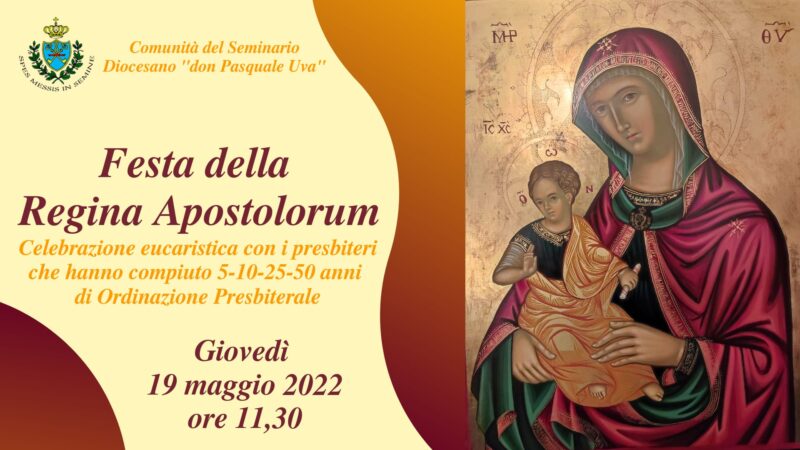 In  occasione della festa della Regina Apostolorum ci ritroveremo insieme per la celebrazione eucaristica, presieduta dal nostro Arcivescovo, con i rettori che, nel corso degli anni si sono avvicendati e con i confratelli che festeggiano i 5-10-25-50 anni di Ordinazione Presbiterale.