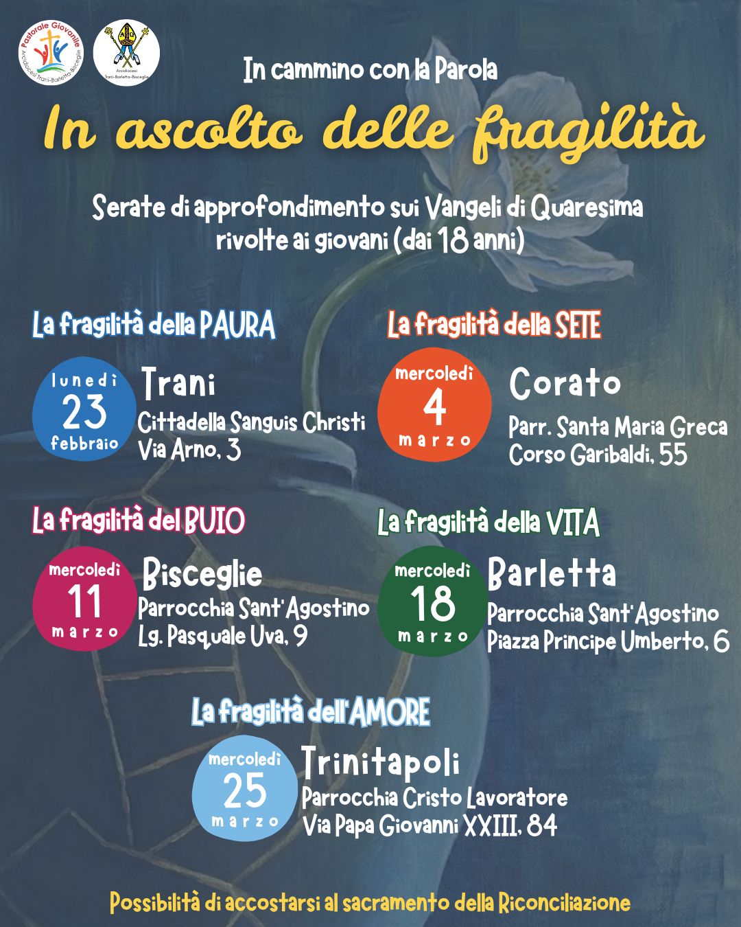 IN ASCOLTO DELLA FRAGILITA’: SERATE DI APPROFONDIMENTO SUI VANGELI DELLA QUARESIMA RIVOLTE AI GIOVANI (DAI 18 ANNI)